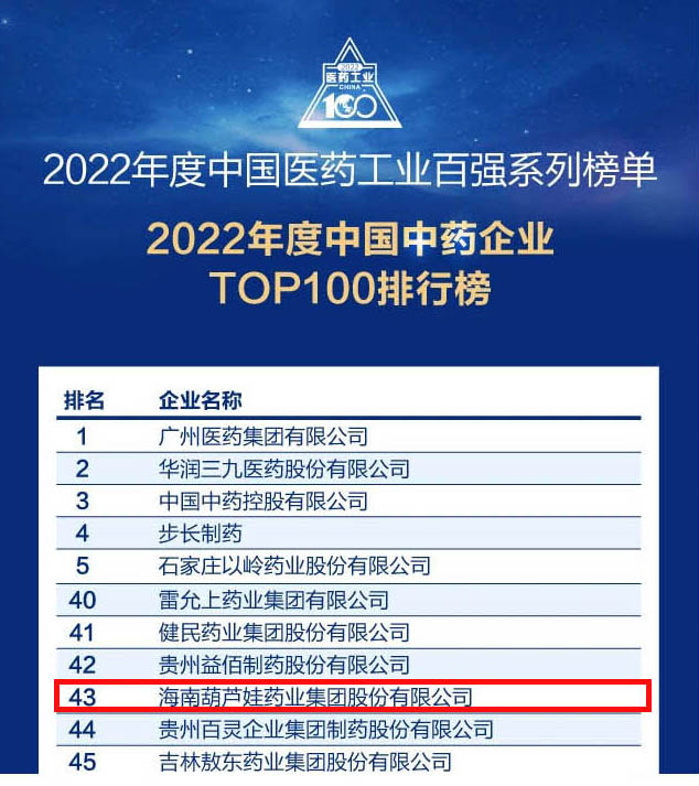 z6mg·人生就是博药业集团连续4年荣登“中国中药企业TOP100排行榜”,排名上升至第43位